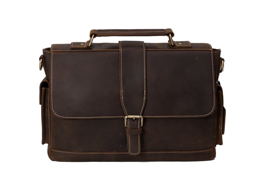 Handmade Full Grain Leather Briefcase, 15.6'' Laptop Bag, Business Handbag CN1488