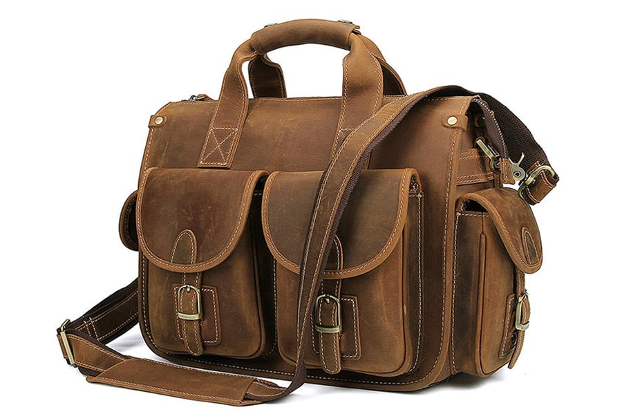 Handmade Vintage Style Leather Briefcase Messenger Bag Satchel Bag Crossbody Shoulder Bag 12007